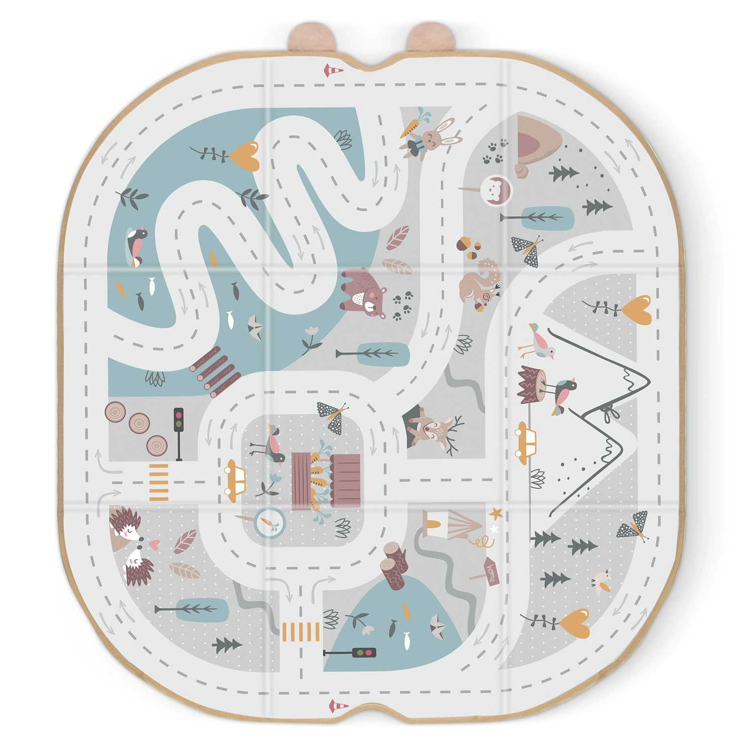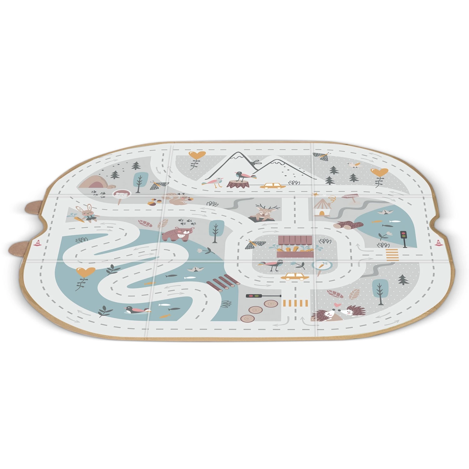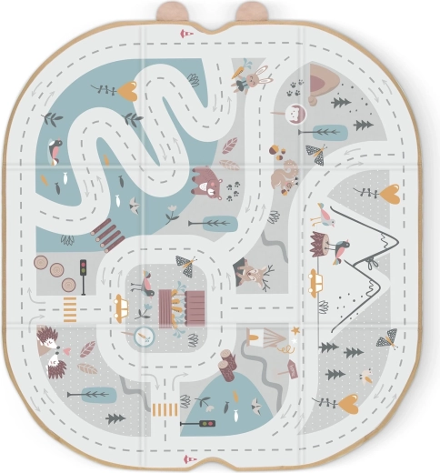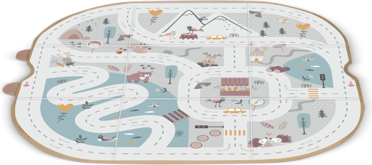 Měkké panely s potiskem silnic, hor a zvířátek podporují kreativní hru s autíčky a figurkami a poskytují příjemný povrch.