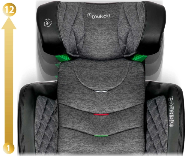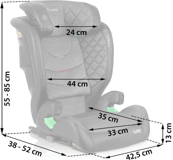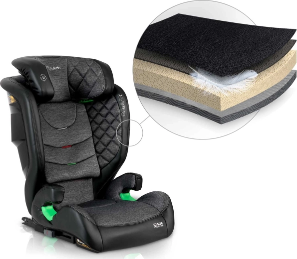 Autosedačka Nukido Louis je navržena pro děti přibližně od 4 do 12 let (100–150 cm) a kombinuje vysokou bezpečnost, komfort a praktičnost. Pevná instalace pomocí ISOFIX drží sedačku stabilně, zatímco systém SIP – Side Impact Protection posiluje ochranu hlavy, krku a páteře při bočním nárazu. Prémiové čalounění s měkkým prošíváním a 2 polohy náklonu zpříjemní i delší cesty.