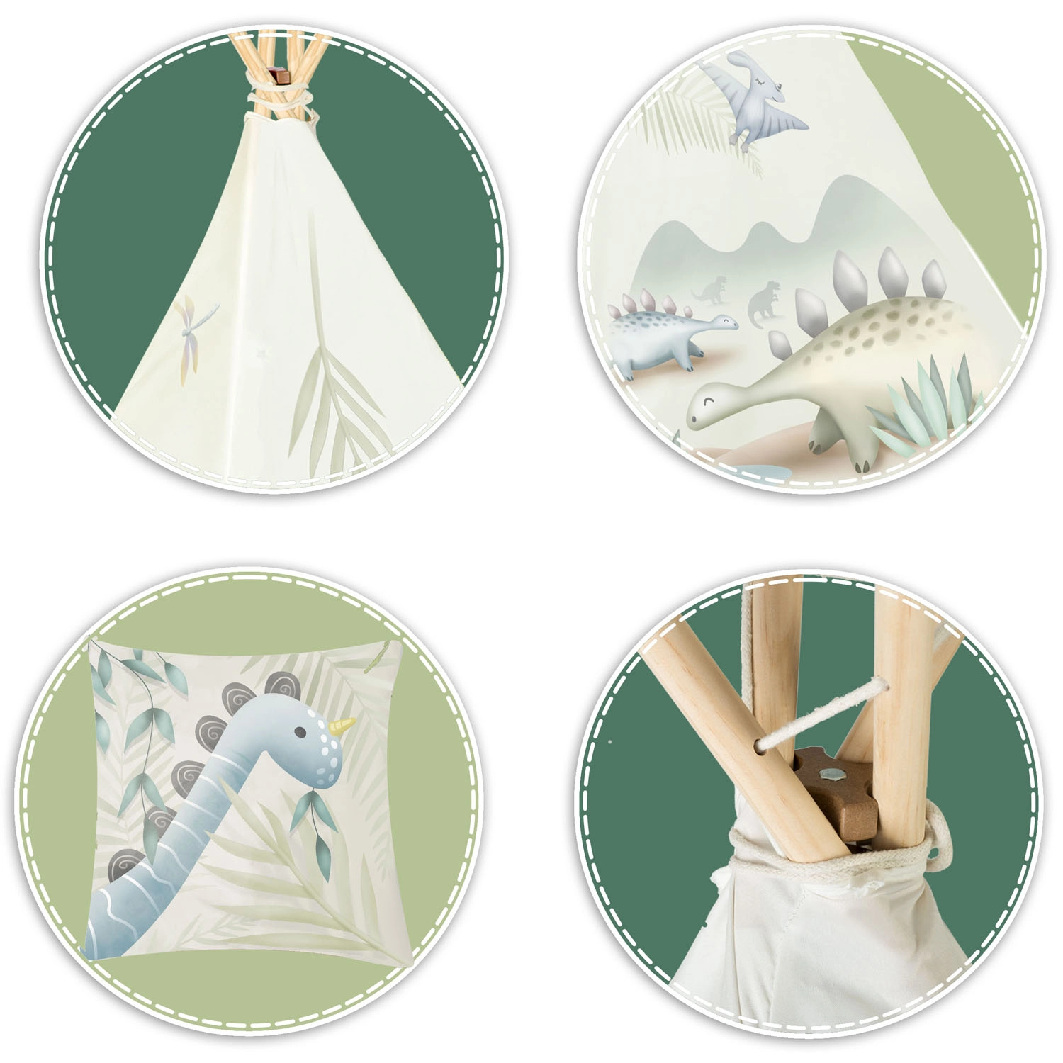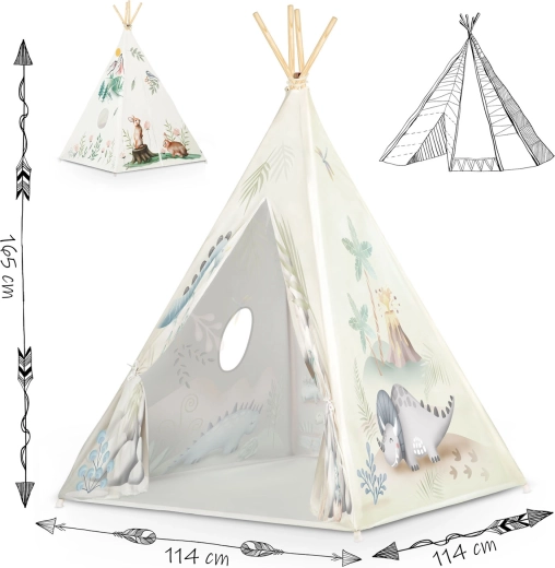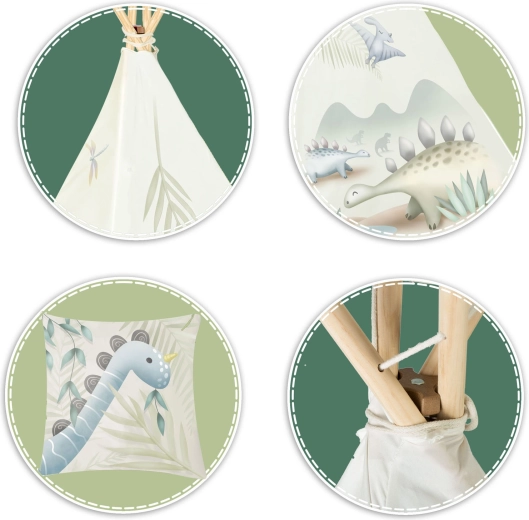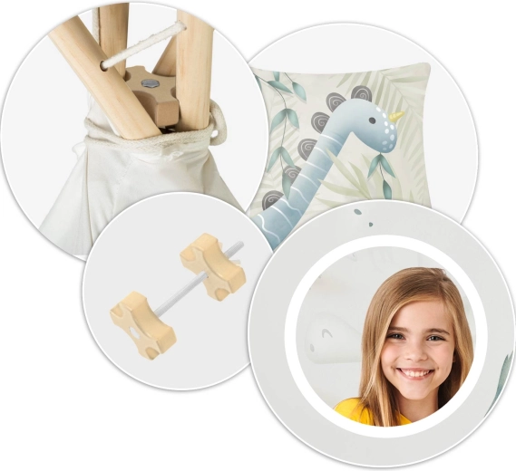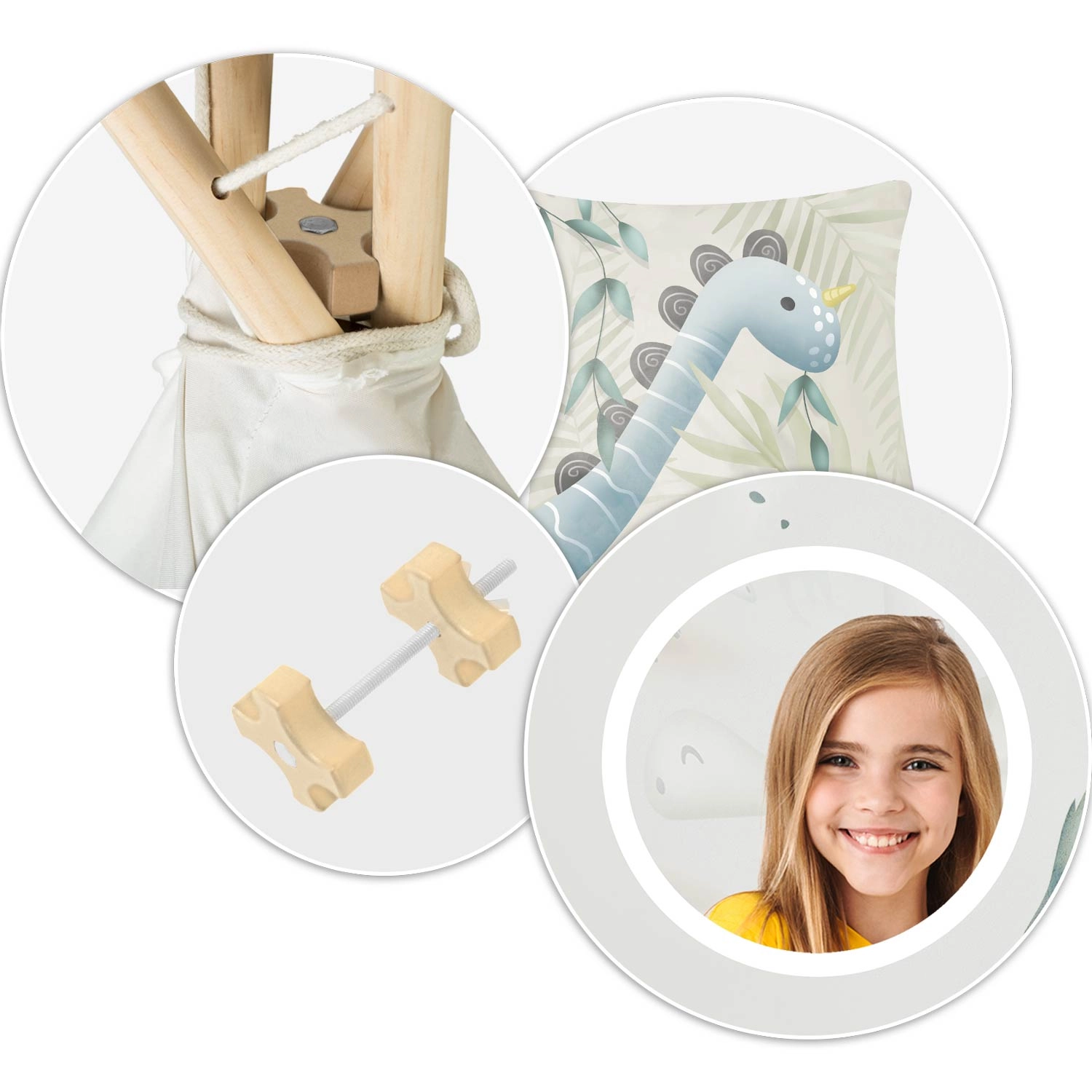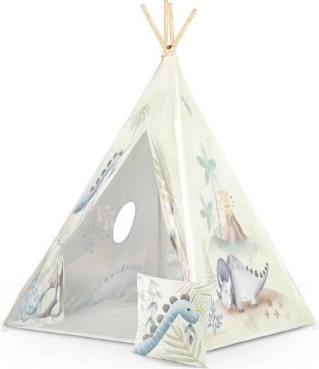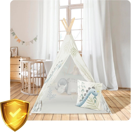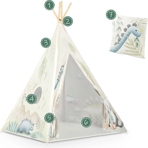 Teepee NUKIDO přináší dětem soukromý prostor pro hru, čtení i odpočinek. Jemné pastelové barvy s grafikou dinosaurů zapadnou do moderního interiéru a respektují principy Montessori – jednoduché tvary, přirozené materiály a podpora samostatné hry. Díky prodyšné tkanině a kulatému okénku je uvnitř vždy příjemně.