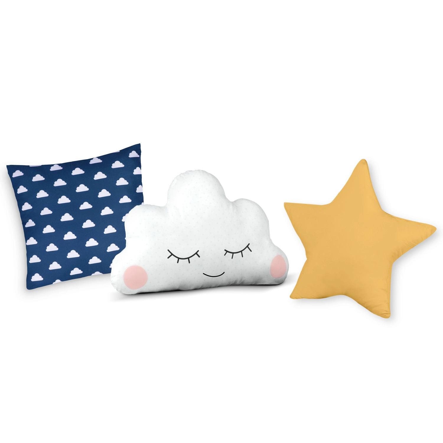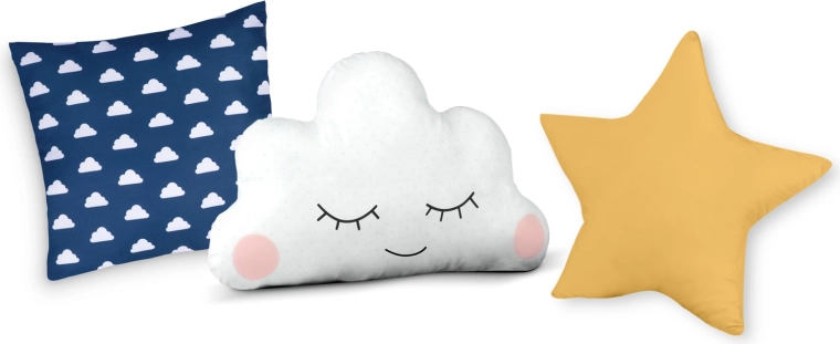 V balení najdete světýlka, stabilizátor, tři polštáře (mráček, hvězda, vzorovaný) a silnou izolační podložku s protiskluzem – vše sladěné do útulného herního koutku.