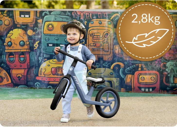 Hmotnost jen 2,8 kg usnadňuje start, ovládání i přenášení. Dítě se rychleji učí balancovat a zatáčet bez zbytečné námahy.