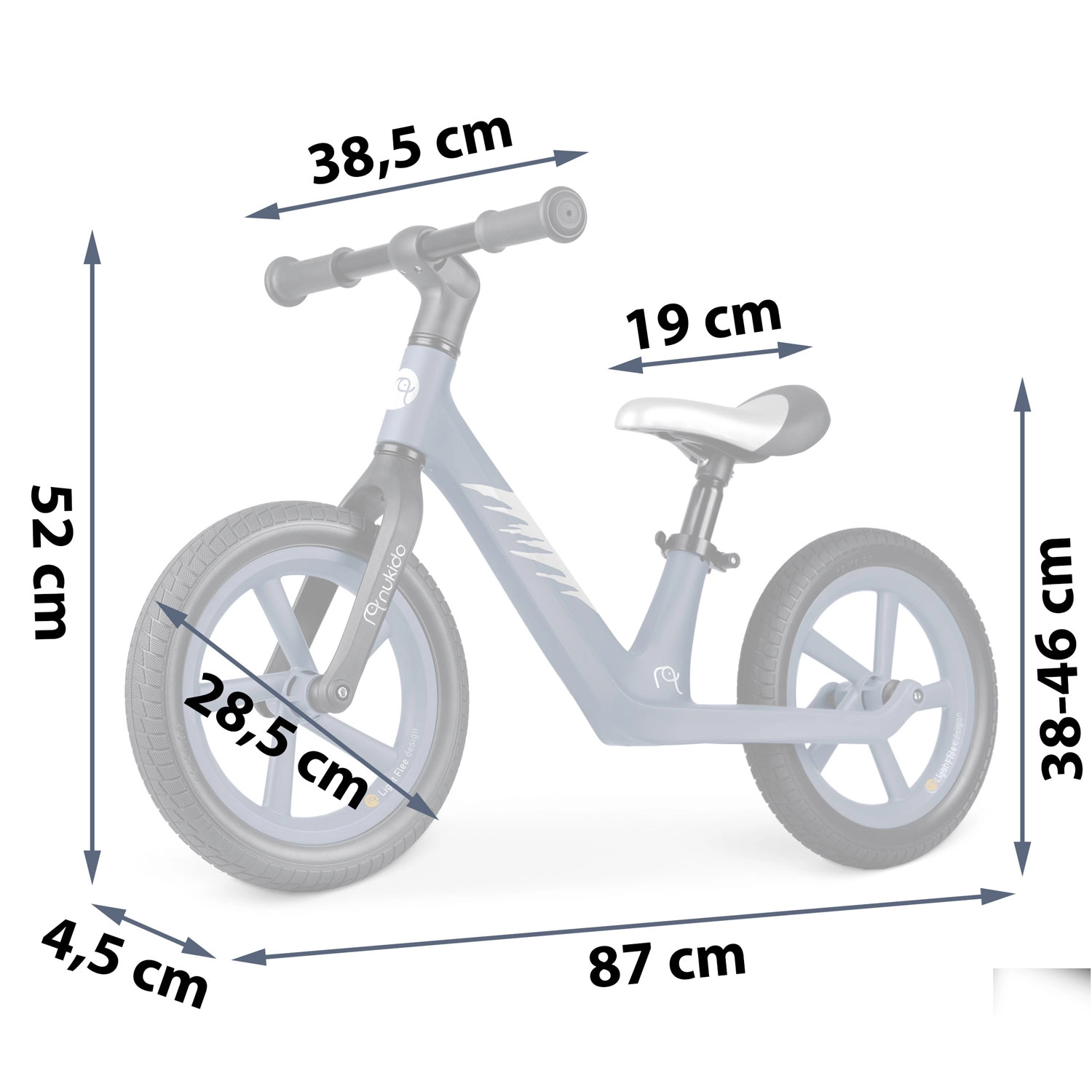 Lehoučké odrážedlo NUKIDO Light Flee pomáhá dětem rozvíjet rovnováhu a koordinaci ještě před prvním šlapacím kolem. Má odolný nylonový rám, nastavitelnou výšku sedla v rozsahu 8 cm, měkké ergonomické sedlo a neprorazitelná 12" kola z EVA pro plynulou a bezpečnou jízdu. Díky protiskluzovým rukojetím se stopery je úchop jistý a kolo je super lehké – jen 2,8 kg, takže se snadno ovládá i přenáší.