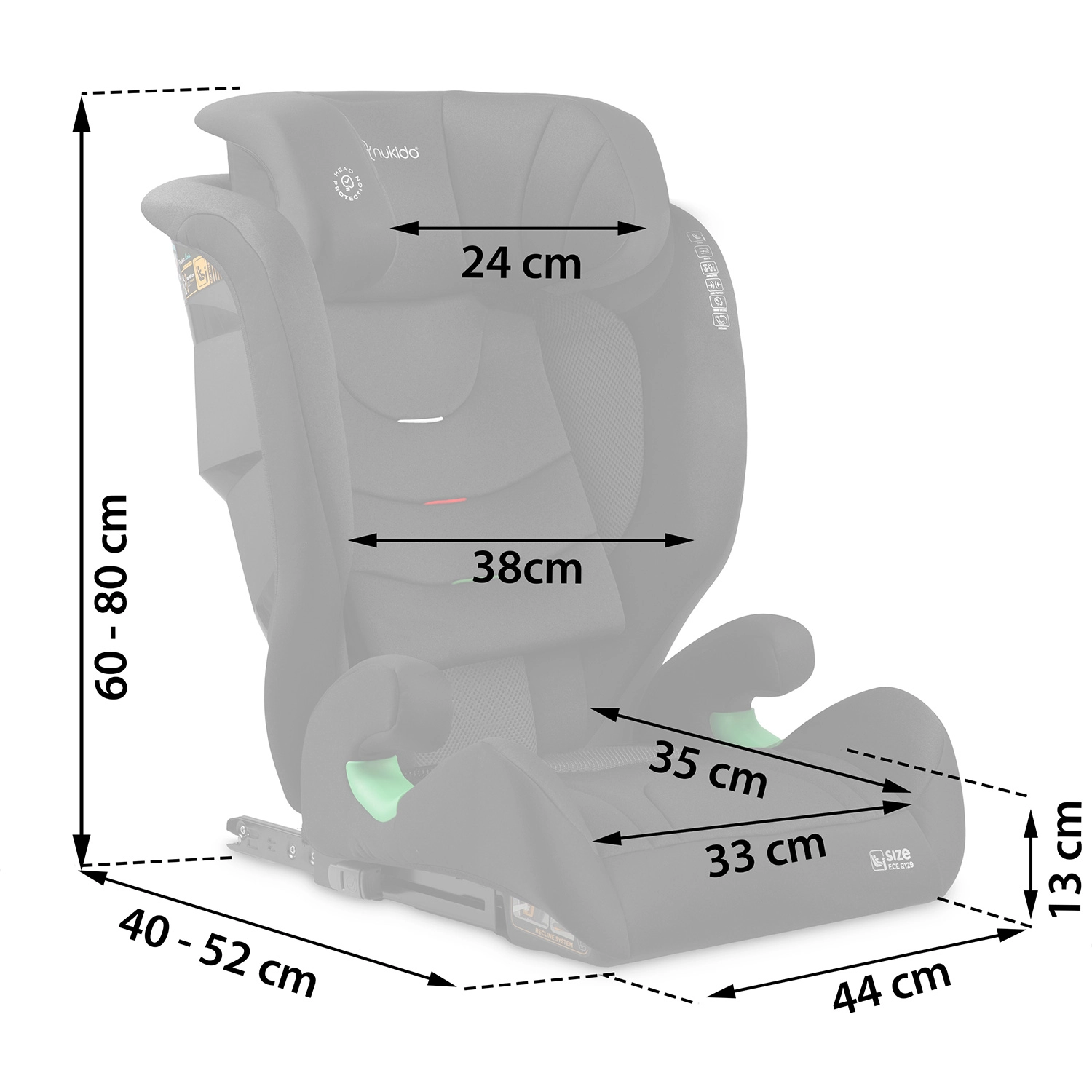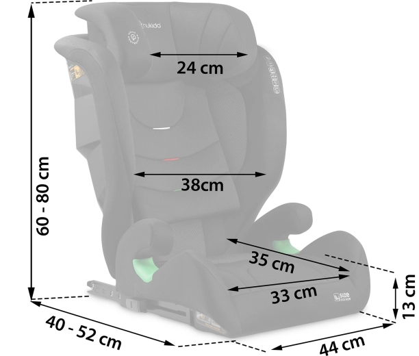 Autosedačka NUKIDO Louis Soft roste s vaším dítětem od přibližně 4 do 12 let. Díky výškovému rozsahu 100–150 cm (i-Size) a 12 úrovním nastavení opěrky hlavy zajistí vždy správnou pozici pásu i komfortní oporu hlavy. Systém ISOFIX poskytuje pevné spojení se strukturou vozu, zatímco pokročilá SIP – Side Impact Protection posiluje ochranu při bočním nárazu.