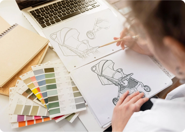- Jízda bez otřesů: 360° přední kola s odpružením a velká zadní kola pro stabilitu.