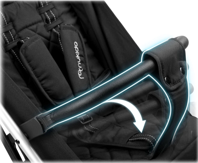 Nukido Paseo spojuje komfort dítěte a praktičnost pro rodiče. Robustní, a přitom lehká konstrukce se díky rychlému skládání vejde do kufru auta i jako příruční zavazadlo. Otočná přední kola s odpružením ulehčují manévrování ve městě, zatímco větší zadní kola zvládnou i méně upravené chodníky. Bezpečnost zajišťují pětibodové pásy s měkkými polstry a spolehlivá parkovací brzda.