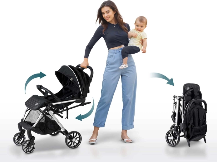 - Rychlé skládání: intuitivní tlačítko pro složení za 2 sekundy – i s dítětem v náručí.