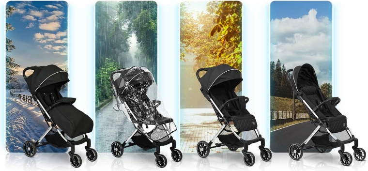 - Komfort po celý rok: polohování do lehu, nastavitelná stříška s ochranou proti UV a dešti, nánožník a pláštěnka v balení.
