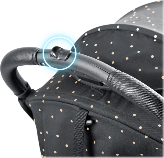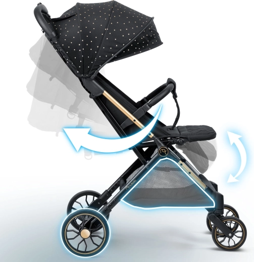 Pro maximální pohodlí dítěte je tu plynule polohovatelné opěradlo až do lehu, nastavitelná opěrka nohou s odolným PU povrchem a rozšířitelná stříška s ochranou před sluncem, větrem i lehkým deštěm. Samozřejmostí je pětibodový pás s polstrováním, odnímatelné madlo a prostorný koš na vše, co potřebujete na cestách.