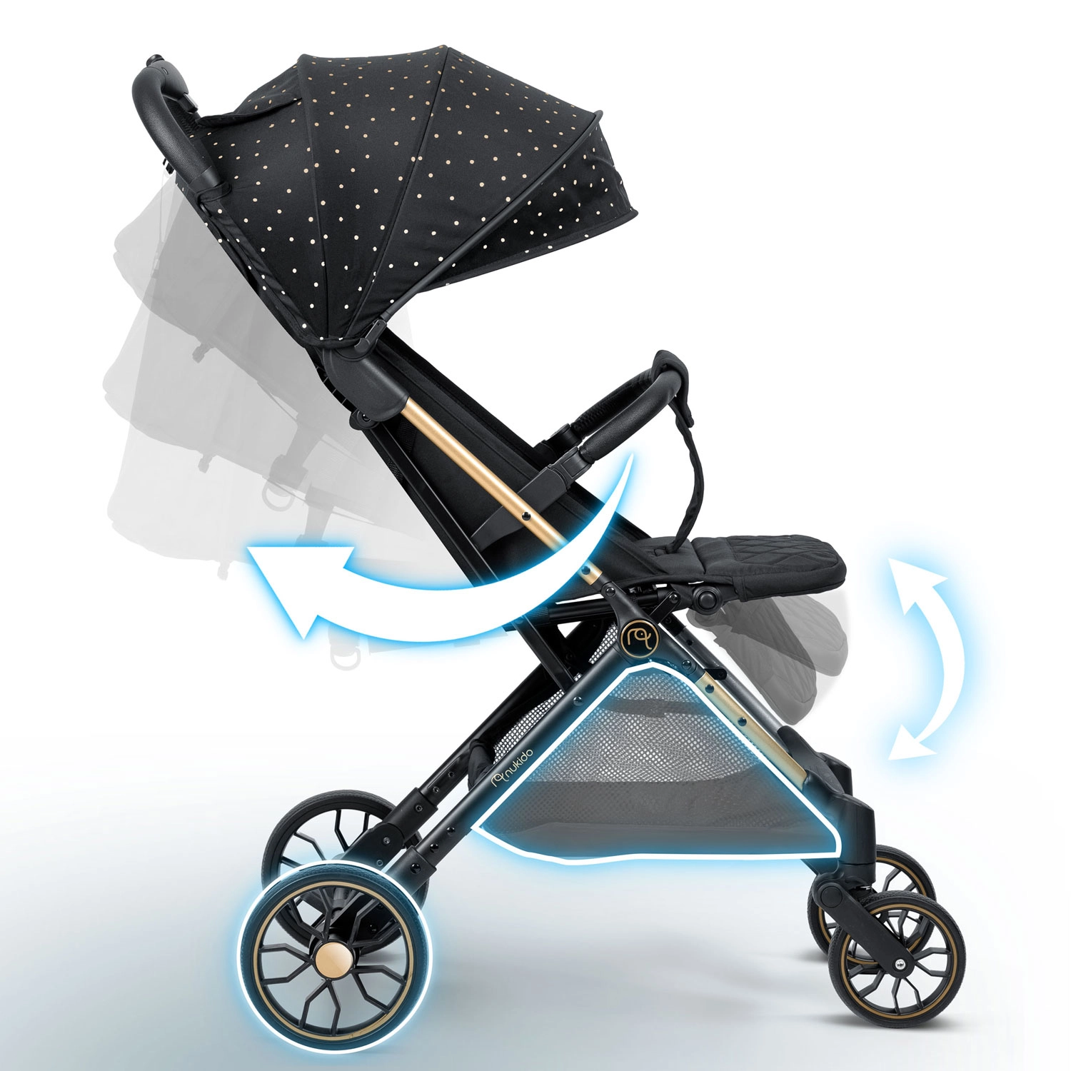Nukido Paseo kombinuje chytrý design, bezpečnost a snadnou ovladatelnost pro město i park. Lehká a pevná konstrukce, odpružená otočná přední kola a větší zadní kola zaručují plynulou jízdu na nerovnostech. Rychlé skládání jednou rukou a kompaktní rozměry po složení usnadňují přenášení i cestování – včetně letecké dopravy.