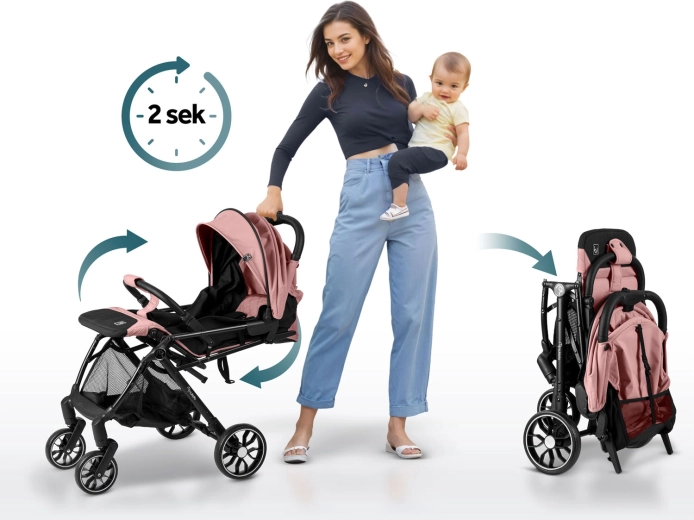 Kočárek složíte jednou rukou za 2 sekundy do kompaktního tvaru, který se vejde do kufru i do kabinového zavazadla. Praktický spodní košík pojme nákupy i hračky. Nastavitelné opěradlo až do úplného lehu a polohovatelný podnožník jsou skvělé pro odpočinek na cestách – od prvních měsíců až do 36 měsíců (max. 15 kg).