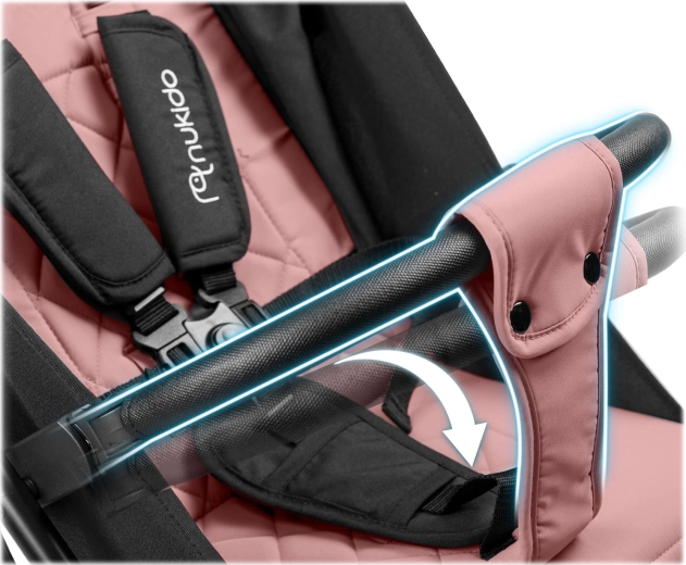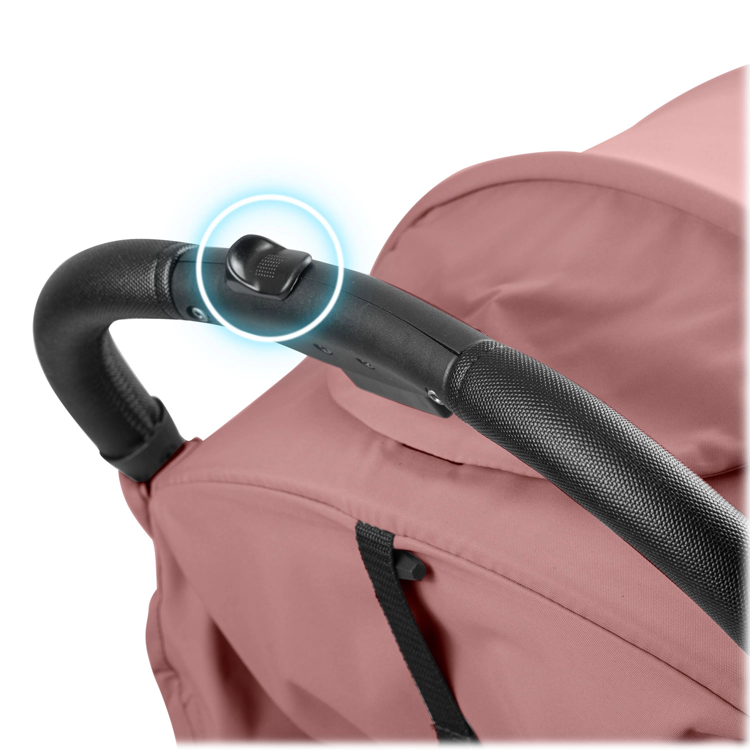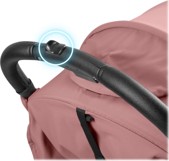 Intuitivní tlačítko umožní bleskové složení jednou rukou. Kočárek stojí po složení sám a vejde se do příruční velikosti – ideální do auta i do letadla.