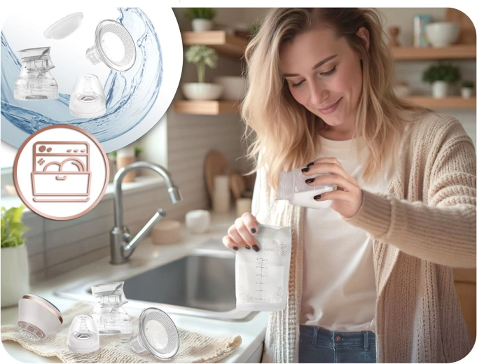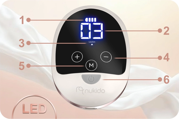 Čitelný LED displej s dotykovým panelem usnadňuje ovládání ve dne i v noci – sledujete fázi, úroveň stimulace i stav baterie. Díky integrované Li‑ion baterii a USB‑C nabíjení získáte až 6 hodin mobility pro odsávání doma, v práci i na cestách. Tichý chod neruší spánek miminka.