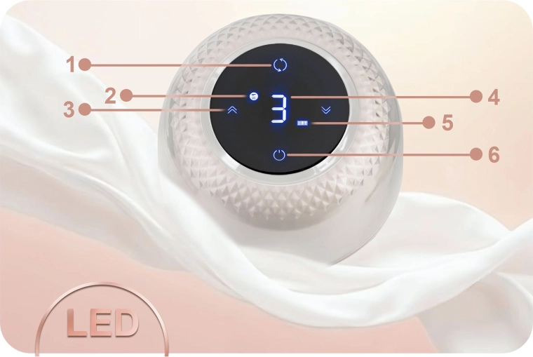 Ergonomická silikonová masážní vložka jemně stimuluje tok mléka a zajišťuje dobré utěsnění i komfort při delším používání. Díky bezdrátovému provozu s vestavěnou lithiovou baterií a USB‑C nabíjení máte volnost pohybu až na 3 hodiny. LED displej s dotykovým ovládáním zobrazuje zvolený režim, úroveň stimulace i stav baterie, a je čitelný i v noci.