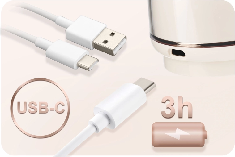 Vestavěná lithiová baterie zajistí až 3 hodiny provozu. Nabíjení přes USB‑C je rychlé a pohodlné, takže můžete odsávat doma, v práci i na cestách.