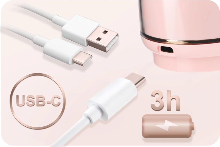Lehká, tichá a bezdrátová odsávačka s vestavěnou baterií vydrží až 3 hodiny. Snadné nabíjení přes USB‑C.