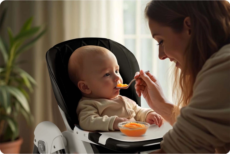 Jeden pomocník pro každý den: pohodlné krmení, klidný odpočinek i jemné houpání. Plynulé sklopení opěradla až do polohy vleže zajistí komfort od narození.