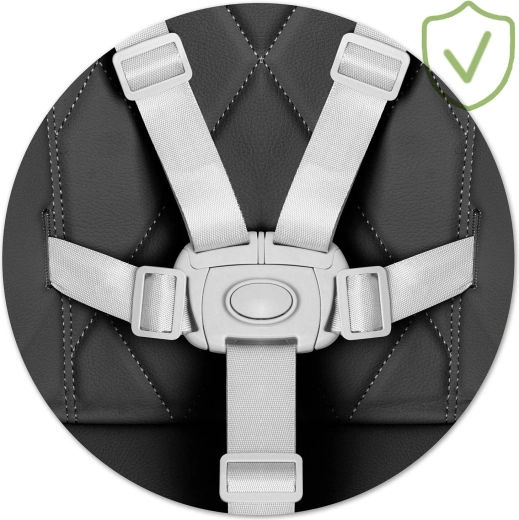 Pevné, délkově nastavitelné 5bodové pásy s odolnou přezkou udrží dítě ve správné poloze a zabrání samovolnému vysunutí ze sedadla.
