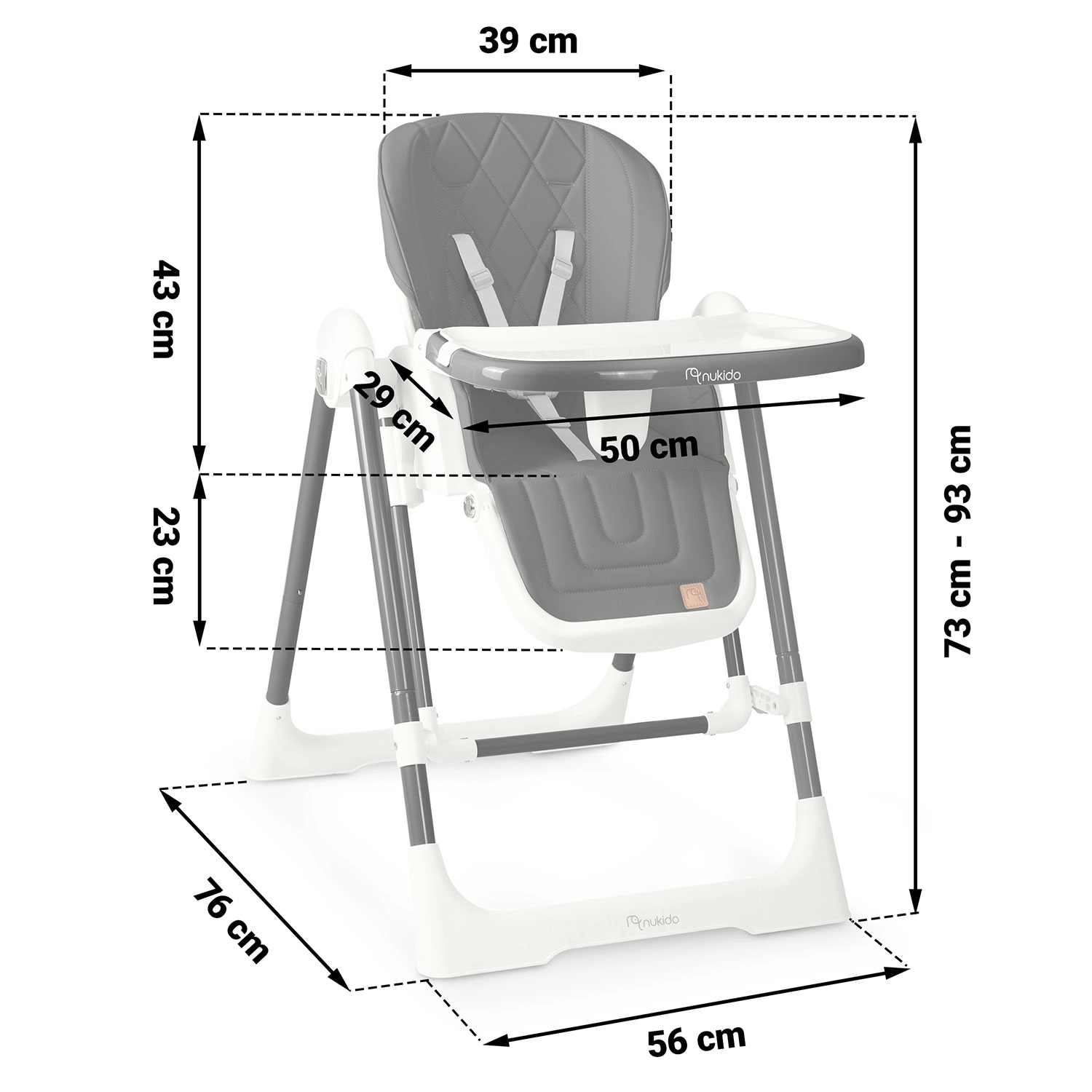 Multifunkční jídelní židlička Nukido Elite 3v1 roste s vaším miminkem: slouží jako jídelní židlička, ležátko i houpátko. Nabízí nastavitelné opěradlo až do polohy vleže, polohovatelnou a odnímatelnou jídelní tác, regulovatelnou výšku a 5bodový bezpečnostní pás. Snadno se čistí díky vyjímatelné horní vložce tácu a potahu, který neabsorbuje nečistoty. Stabilní ocelové nohy a možnost složení do kompaktních rozměrů zajistí pohodlí i bezpečí doma i na cestách.