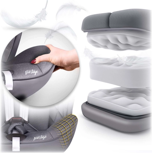 Prémiové materiály s měkkým, silným polstrováním, prošívaným čalouněním a odnímatelným potahem (pratelným) garantují dlouhou životnost i elegantní vzhled. Technologie FlexArmor™ s tvarovanou vrstvou EPS a hustou pěnou zvyšuje absorpci energie a komfort na každé trase.