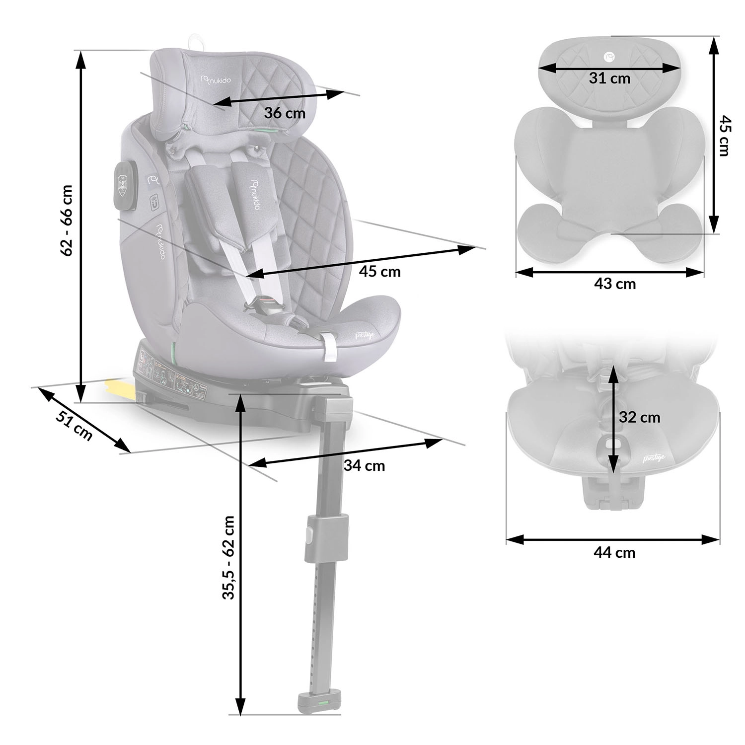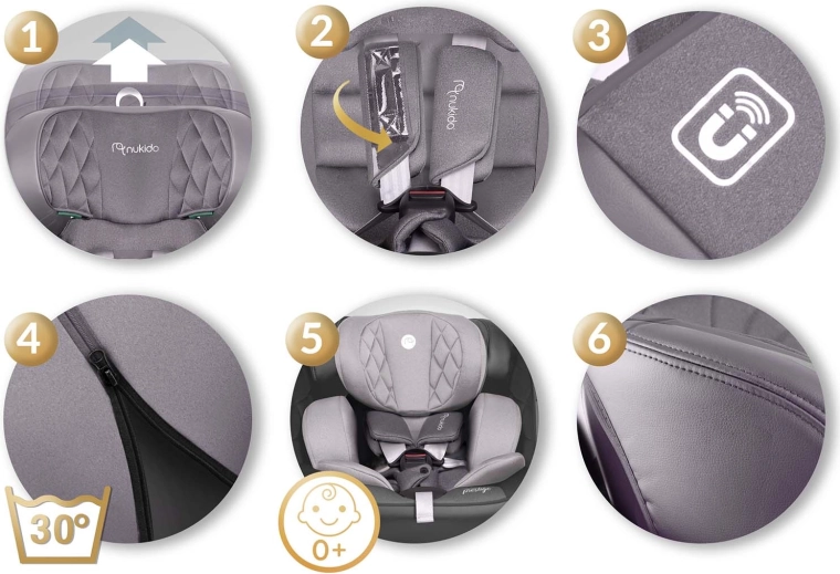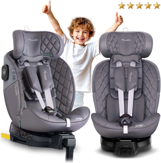 Autosedačka Nukido Prestige Line kombinuje špičkové bezpečnostní prvky s maximálním komfortem a praktičností pro každodenní cestování. Díky otočné základně 360° snadno připoutáte dítě z boku, zatímco SIP – Side Impact Protection s vyztuženými bočnicemi chrání hlavu, krk i páteř při bočním nárazu. Konstrukce odpovídá normě ECE R129 (i-Size) a roste s dítětem od narození až do přibližně 12 let.