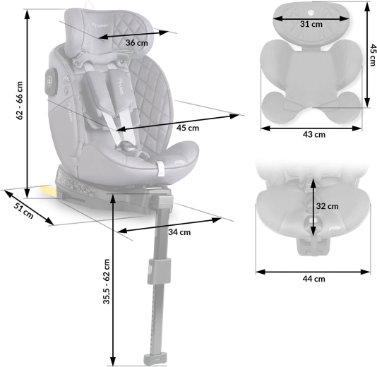Instalace je rychlá a jistá díky ISOFIX a stabilizační noze (do 100 cm), pětistupňové polohování sklonu zajistí pohodlí při spánku a 12 pozic opěrky hlavy perfektně přizpůsobí sedák aktuální výšce dítěte. Pro nejmenší je připravena novorozenecká vložka, pětibodové pásy s protiskluzovými chrániči a praktické magnety na uchycení pásů usnadňují usazení bez zamotávání.