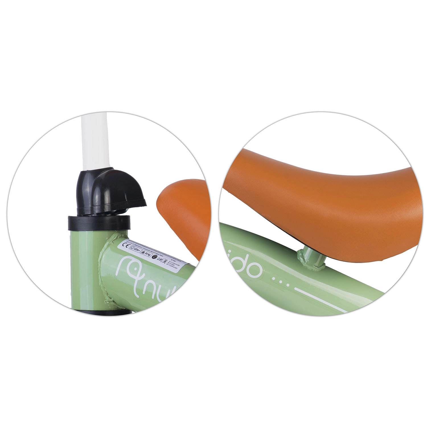 Lehký kovový rám je odolný vůči nárazům, sedlo z pěny je příjemné i při delším ježdění a gumované rukojeti se zarážkami chrání ruce i stěny během domácího tréninku. Odrážedlo pomáhá dětem budovat sebedůvěru a plynule přejít na šlapací kolo.