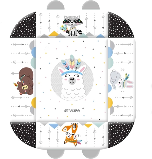Hrací podložka RICOKIDS Boho 110 × 100 cm vytváří útulné a bezpečné hnízdečko pro každodenní objevování. Dvě křížené hrazdičky s odnímatelnými závěsnými hračkami (chrastítka, kousátka, zrcátko) podporují zrakové sledování, koordinaci oko–ruka a jemnou motoriku. Měkké polstrování a zvedací strany zajistí pohodlí i ochranu během hry, zatímco kontrastní a zvířecí motivy přinášejí vizuální stimulaci.