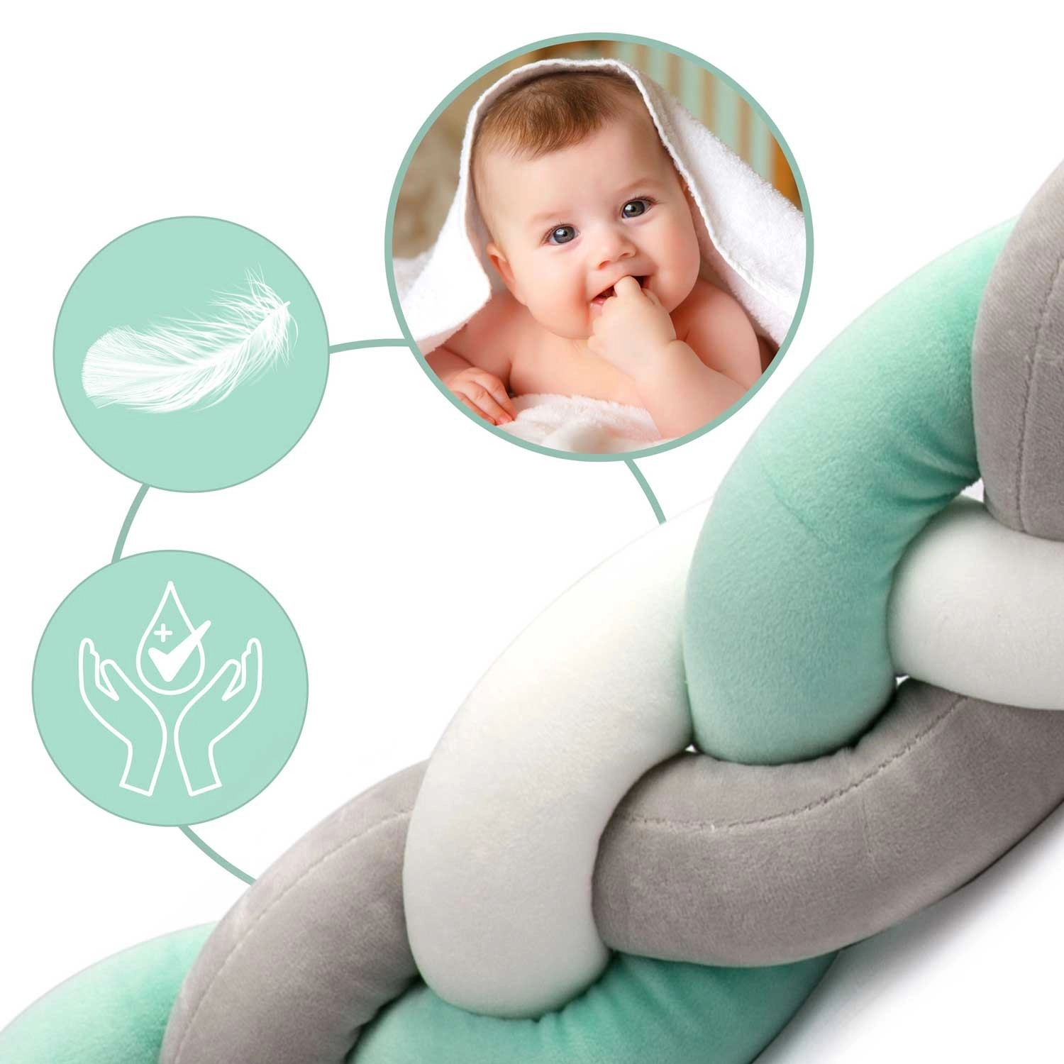 Měkké, antialergické provedení bez ostrých částí chrání miminko při spánku i hraní a tlumí nárazy o příčky postýlky.