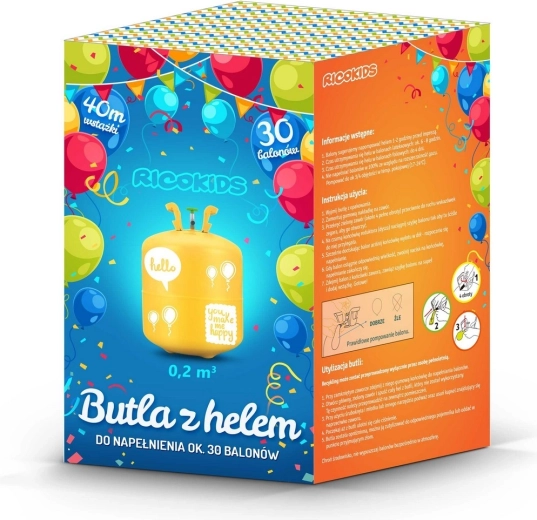 Kompletní set obsahuje 0,20 m³ helia, 30 barevných balónků a 40 m dekorační stuhy – připraveno k okamžité párty bez dalšího shánění doplňků.