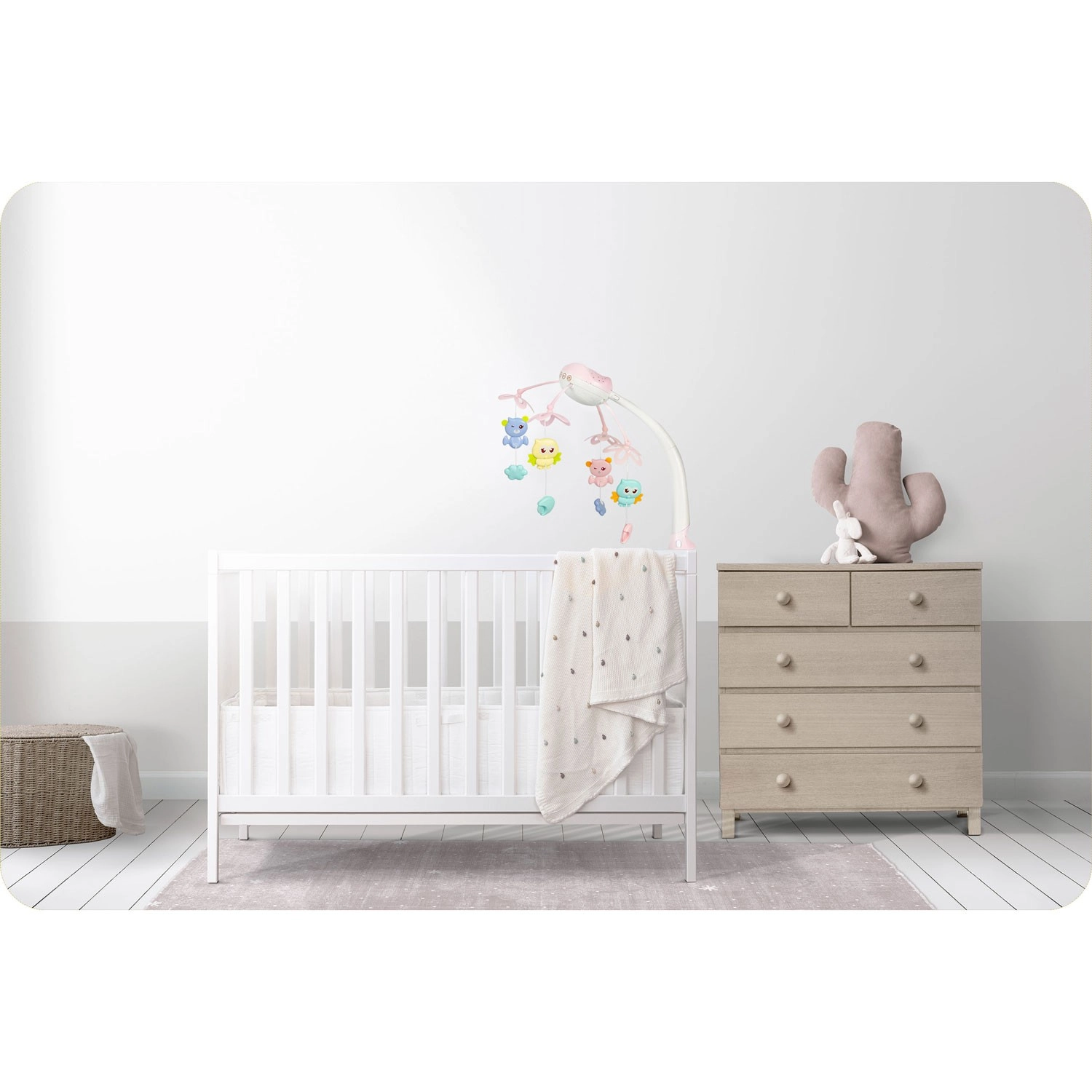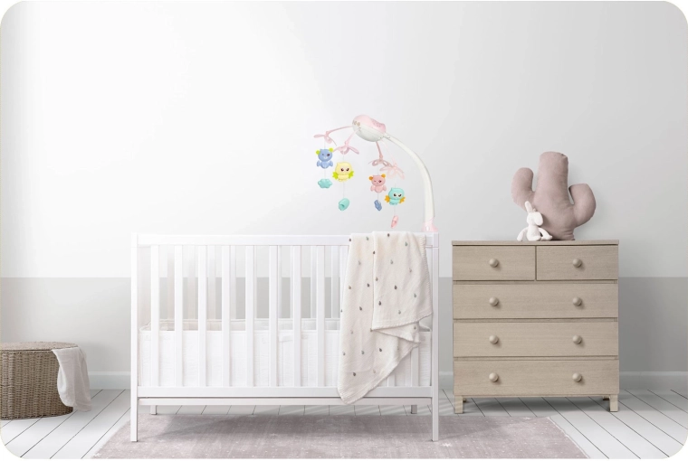 Kolotoč nad postýlku s projektorem vytváří klidnou atmosféru pro usínání i hraní. Díky kombinaci měkkých světel (spodní LED lampička a horní projekce hvězd), jemné rotace a výběru z 13 melodií zaujme smysly miminka a pomůže mu se zklidnit.