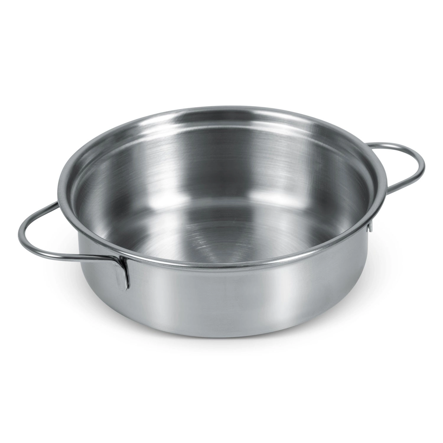 Široký nerezový hrnec s postranními uchy je ideální pro „vaření polévky“ i míchání a snadno se drží i malým rukám.