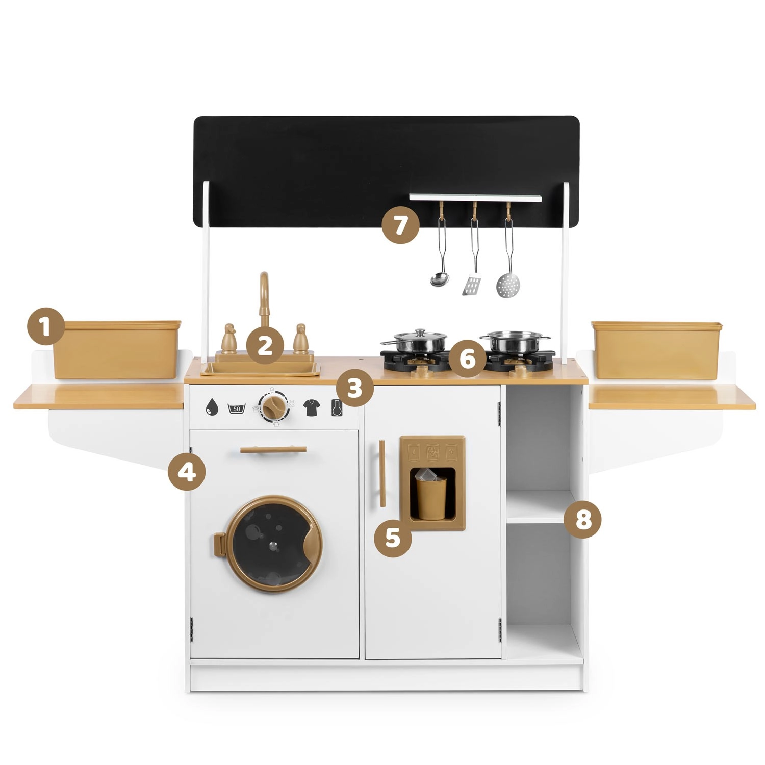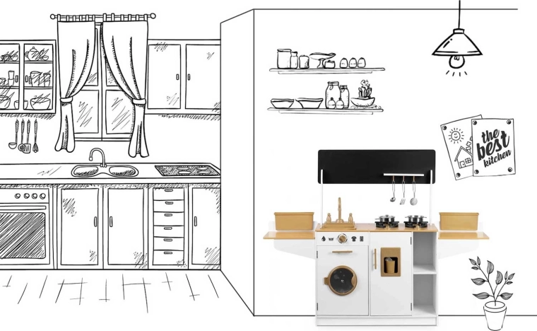 Hra podporuje rozvoj samostatnosti, sociálních dovedností a učení napodobováním dospělých. Díky promyšlenému uspořádání a úložným policím mají děti vše po ruce a kuchyňka zůstává přehledná.