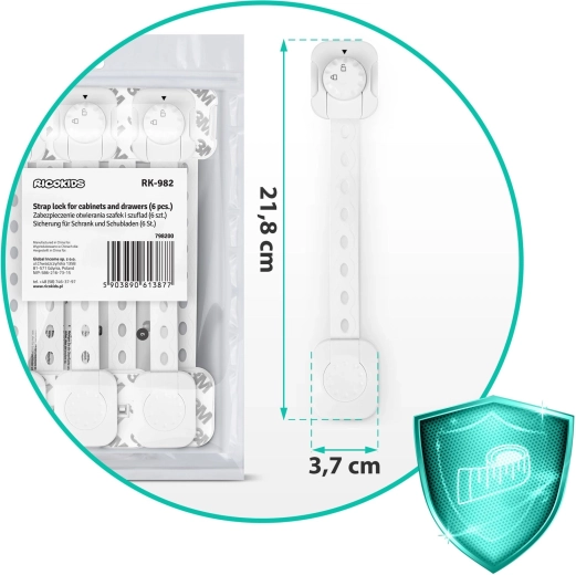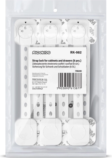 Chraňte svůj domov před zvídavými ručkami s tímto praktickým setem 6 ks bezpečnostních zámků RICOKIDS. Díky silnému lepidlu 3M, nastavitelné délce pásku a snadné montáži bez nářadí rychle zajistíte skříňky, šuplíky či spotřebiče. Zámky jsou odolné, nepoškozují nábytek, mají tichý chod a jsou UV stabilní, takže neblednou.