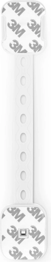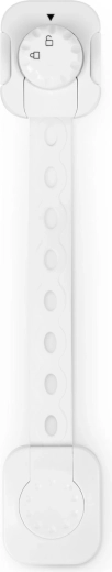 Flexibilní pásek s více otvory umožní přesně doladit délku a bezpečně uzamknout skříňky, zásuvky či spotřebiče různých rozměrů.