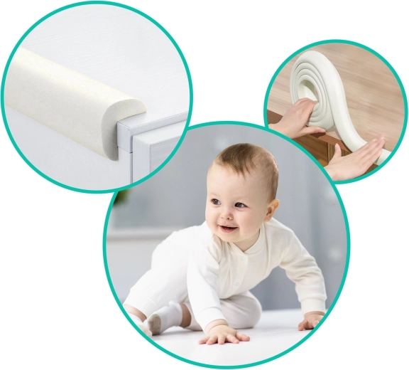 Kvalitní pěnový materiál spolehlivě změkčí ostré hrany a pomůže chránit děti před bouchnutím. Pružná konstrukce se přizpůsobí rovným i lehce zaobleným hranám.