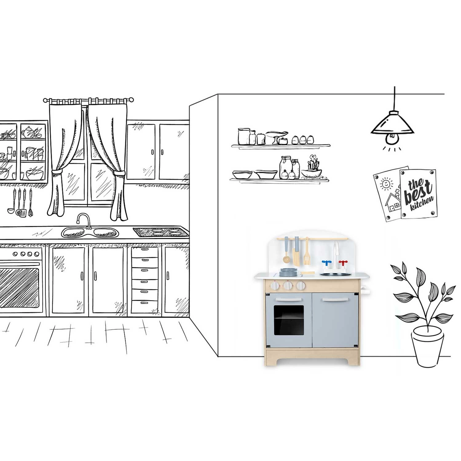 Dopřejte dětem svět fantazie s kuchyňkou RICOKIDS, která vypadá a funguje jako opravdová. Díky realistickým prvkům – sporák s hořáky a otočnými ovladači, trouba s okénkem, dřez s otočným kohoutkem a vyjímatelnou miskou – si malí kuchaři osvojí dovednosti napodobováním dospělých a přitom se skvěle baví.