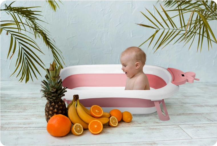 Díky lehké konstrukci, rozkládacím nohám a protiskluzovým zakončením je vanička stabilní i na kluzkém povrchu. Po koupání ji jednoduše složíte do tenkého profilu, takže šetří místo v koupelně, ve skříni i v zavazadle. Praktický vypouštěcí špunt usnadňuje vylévání vody přímo do vany či umyvadla – bez zbytečného zvedání.