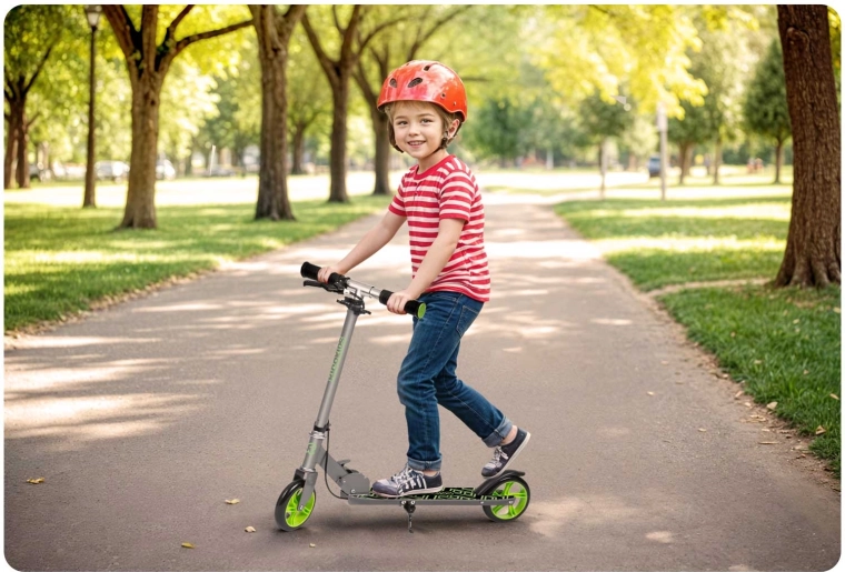 Hledáte koloběžku, která poroste s dítětem a zároveň nabídne jistotu při jízdě po chodnících i cyklostezkách? Model RICO KIDS Kodi kombinuje nízkou hmotnost, skládací konstrukci a komfortní kola z PU kaučuku o průměru 145 mm, která skvěle tlumí nerovnosti. Díky ruční a nožní brzdě má malý jezdec jízdu i brzdění plně pod kontrolou.