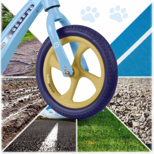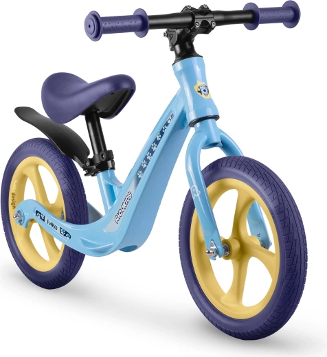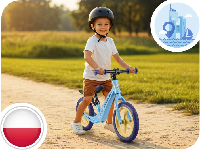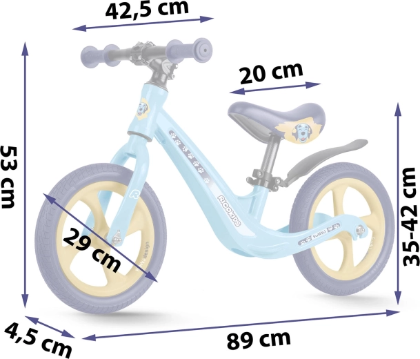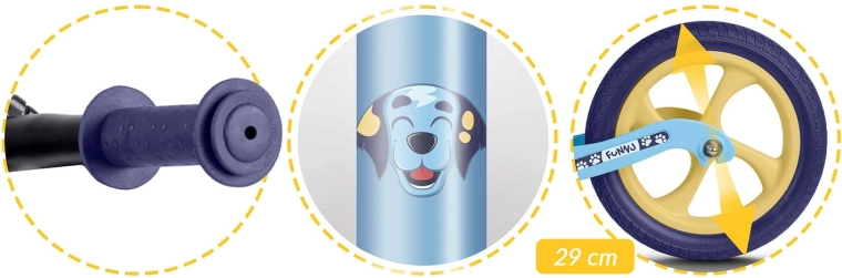 Ergonomicky tvarované, měkké pěnové sedlo s plynulou regulací výšky (cca 35–42 cm) roste s dítětem a umožní pohodlnou jízdu v každé fázi vývoje. Gumové rukojeti se zarážkami chrání ruce a zlepšují jistotu úchopu. Odrážedlo podporuje sebevědomí, koncentraci a přirozený přechod na klasické šlapací kolo.