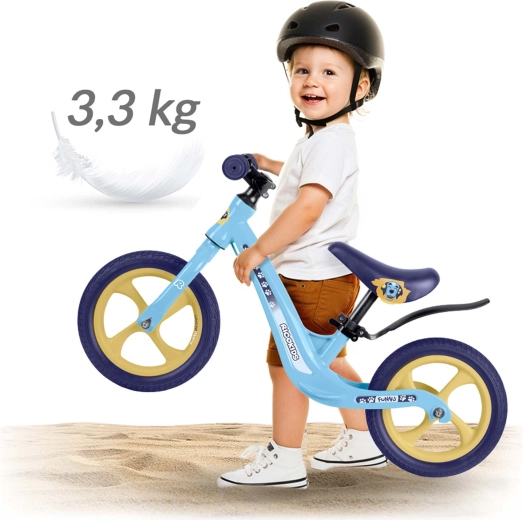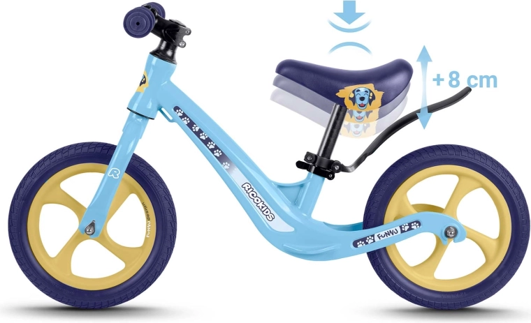 Ricokids Funnu je ideální první odrážedlo pro malé jezdce. Díky ultralehké konstrukci si s ním děti snadno poradí samy a rodiče jej bez námahy přenesou do parku či po schodech. Magnesiový rám zajišťuje vysokou pevnost při nízké hmotnosti a kola z EVA pěny jsou bezúdržbová, tichá a neprorazitelná – perfektní na trávu, asfalt i štěrk.