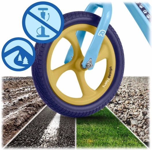 Bezdušová EVA kola nevyžadují huštění, neprorazí se a skvěle tlumí nerovnosti. Vhodná na trávu, asfalt i šotolinu.