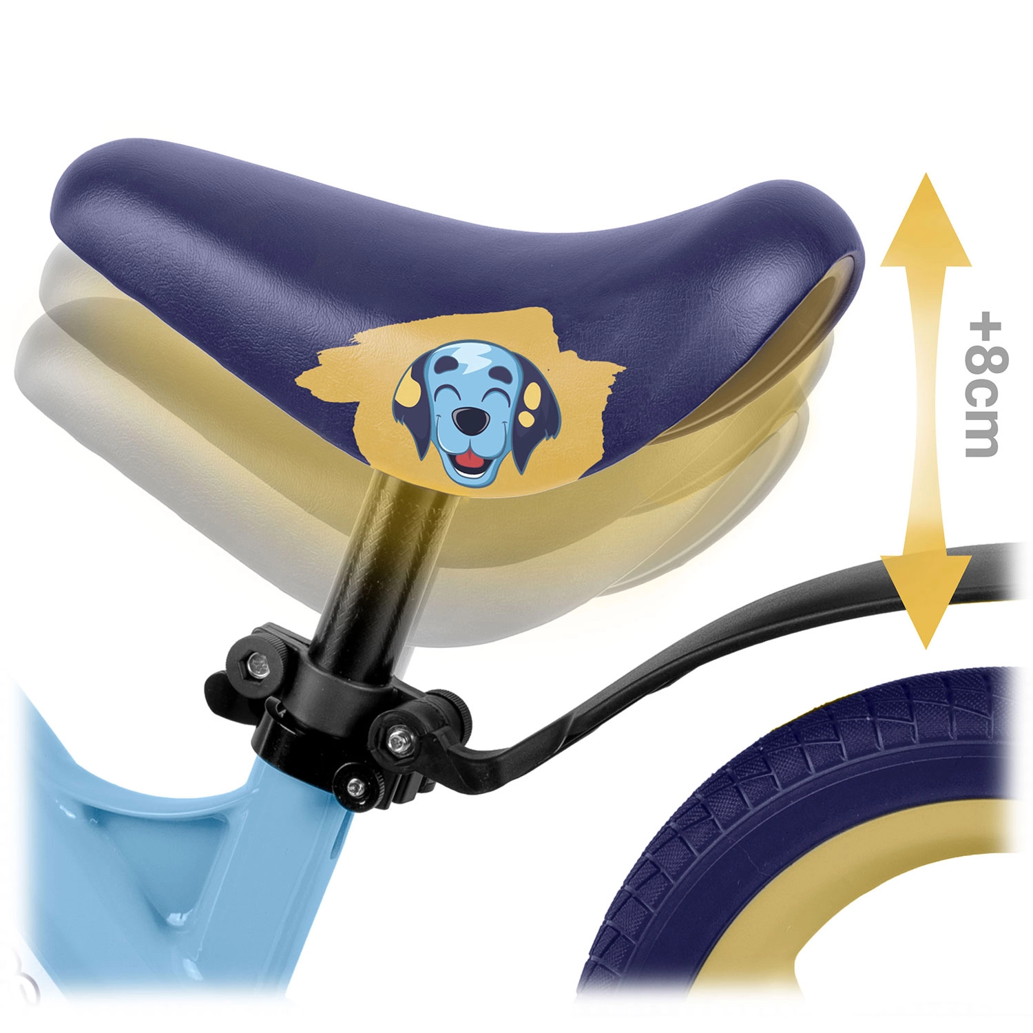 Měkké ergonomické sedlo s rozsahem cca 35–42 cm zajistí správné nastavení pro pohodlí a stabilitu v každém věku.