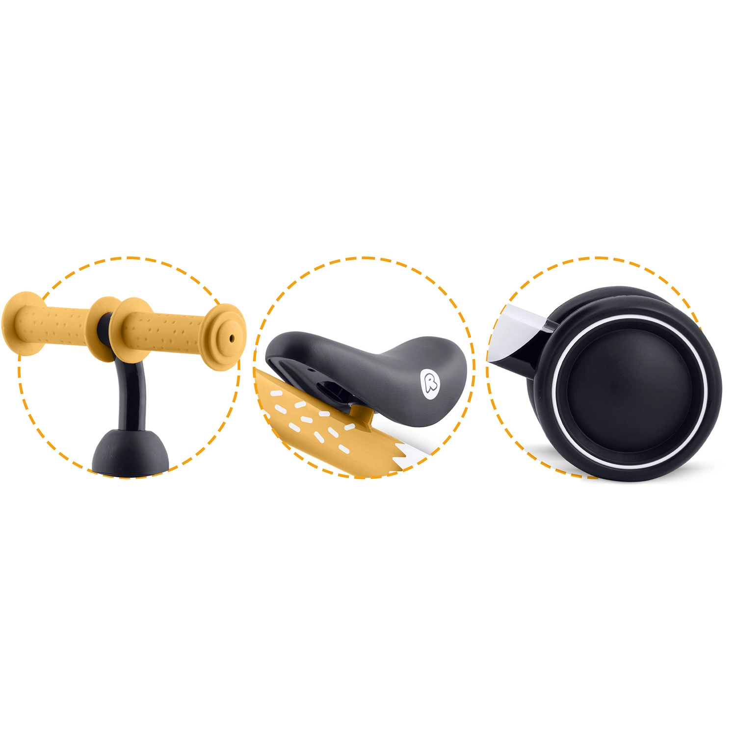 Měkké sedlo s nízkým posedem umožní dětem bezpečně dosáhnout na zem, pohodlně odrážet a zastavit kdykoli je potřeba.