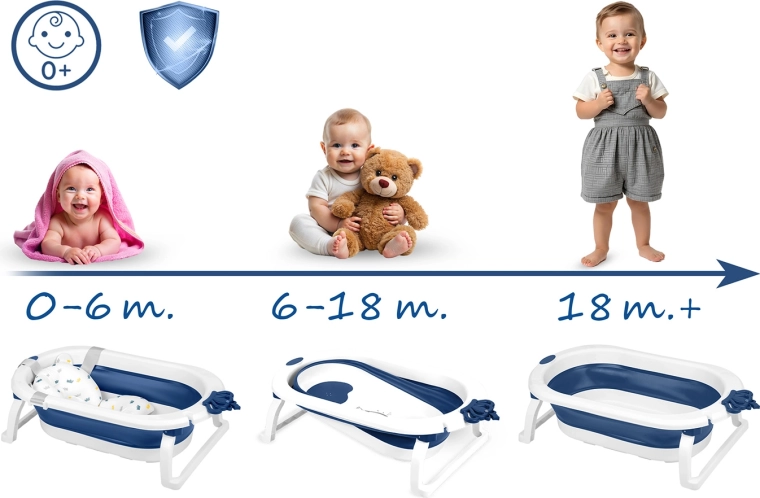 Tato skládací vanička roste s vaším dítětem: od na měkké vložce, přes samostatné sezení batolat, až po prostorné koupání předškoláků. , a zajišťují komfort i jistotu při každodenní koupeli. Teplotní zátka varuje změnou barvy, jakmile voda přesáhne 38 °C.