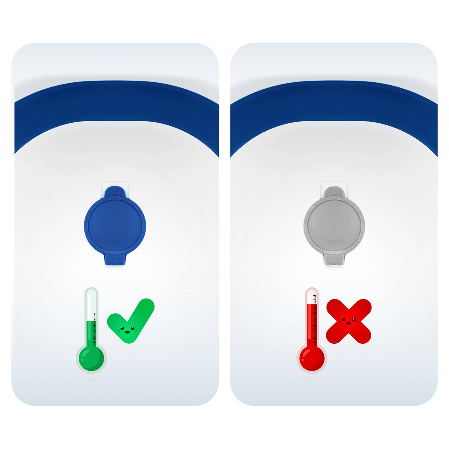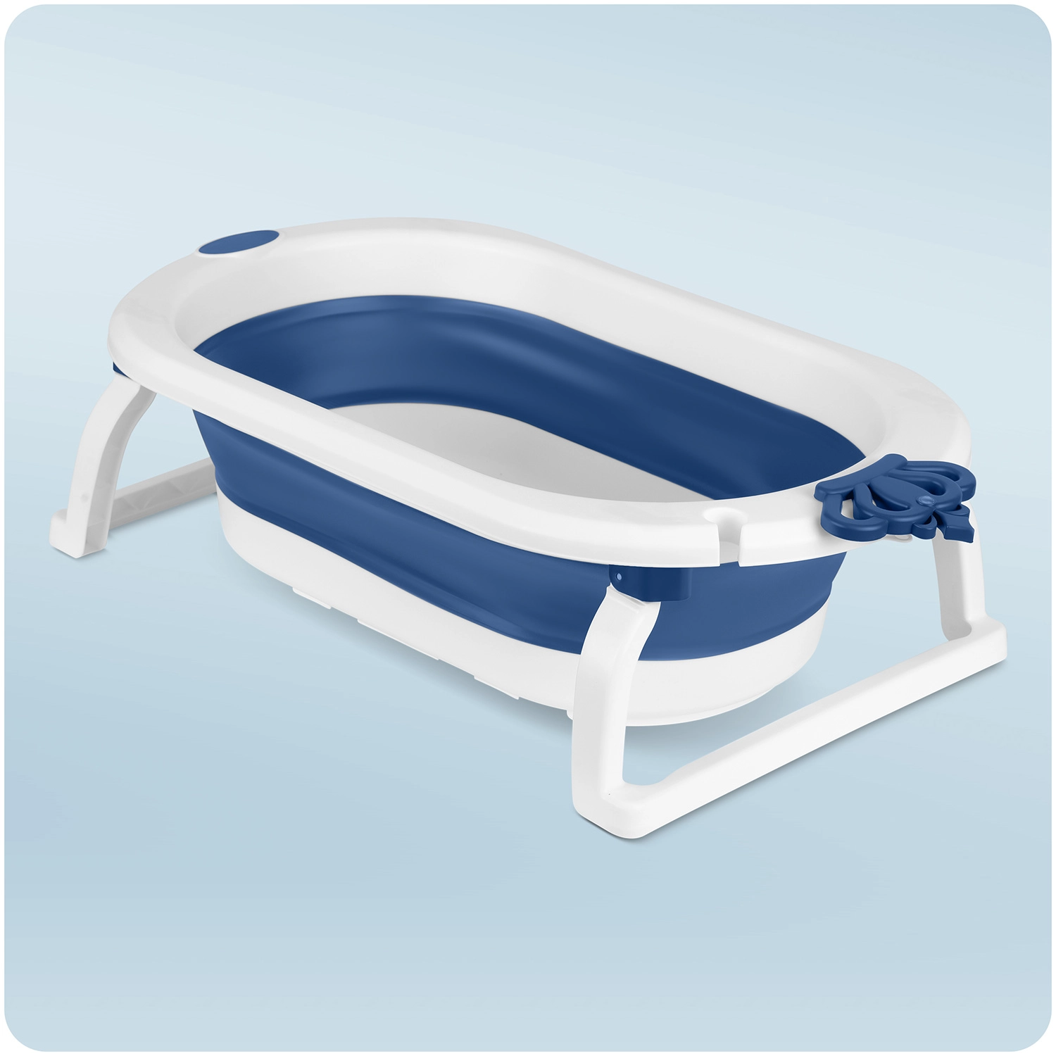 Sklopné nohy s protiskluzovými zakončeními udrží vaničku pevně na místě. Zátka změní barvu při překročení 38 °C, takže máte teplotu vody vždy pod kontrolou.