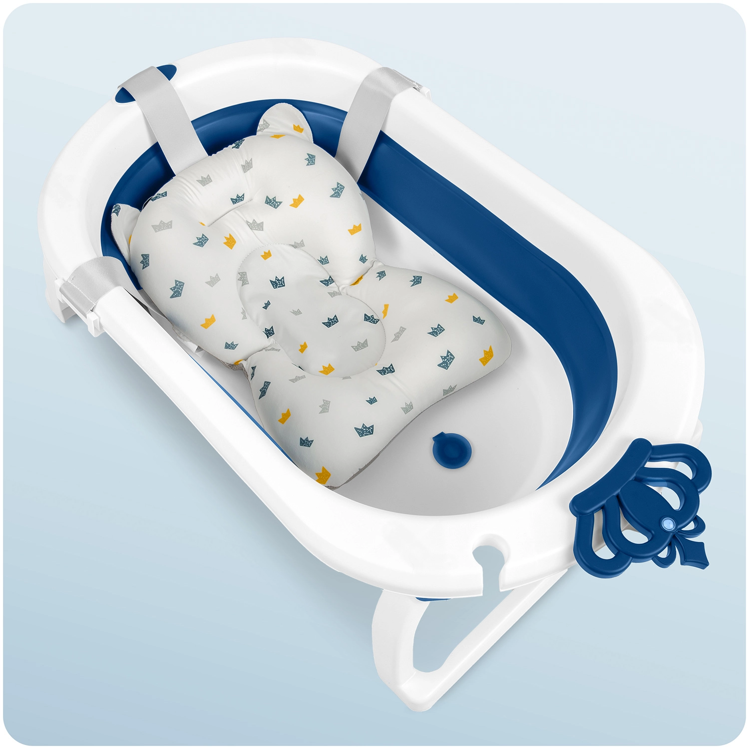 Ergonomicky tvarovaná podpora jemně drží hlavičku a záda miminka. Tři nastavitelné popruhy zajistí stabilní uchycení bez sklouzávání a rychleschnoucí materiál zaručí hygienu po každé koupeli.