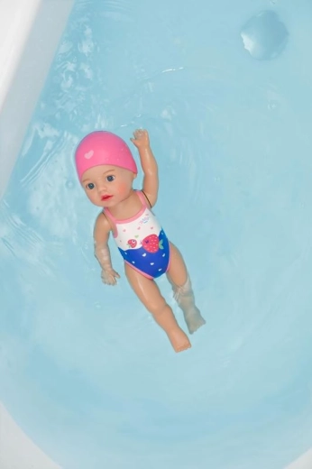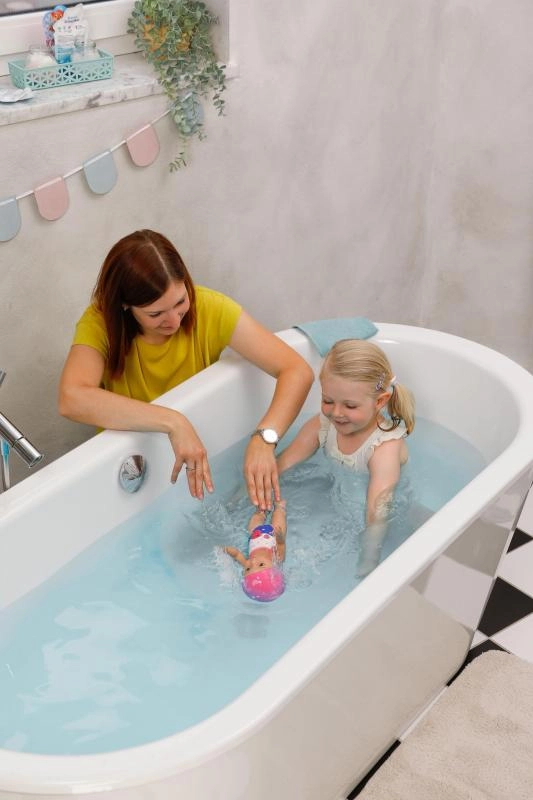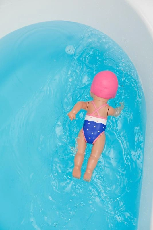 Panenka BABY born plaváček Lizzie je skvělá pro první pozitivní zkušenosti s vodou. Stačí jednoduše natáhnout její ruce, položit ji na hladinu a sledujte, jak sama plave. Realistické pohyby kraula a motýlka probouzí dětskou fantazii a podporují jemnou motoriku.