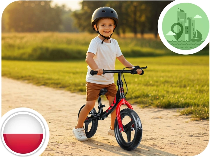 Polský design s důrazem na detaily splňuje evropské standardy bezpečnosti. Protiskluzové gripy se zarážkami zajišťují jistý úchop, zatímco ergonomické sedlo s plynulým nastavením výšky se přizpůsobí růstu dítěte. Zadní brzda usnadňuje bezpečné zastavení a zvyšuje kontrolu nad jízdou.