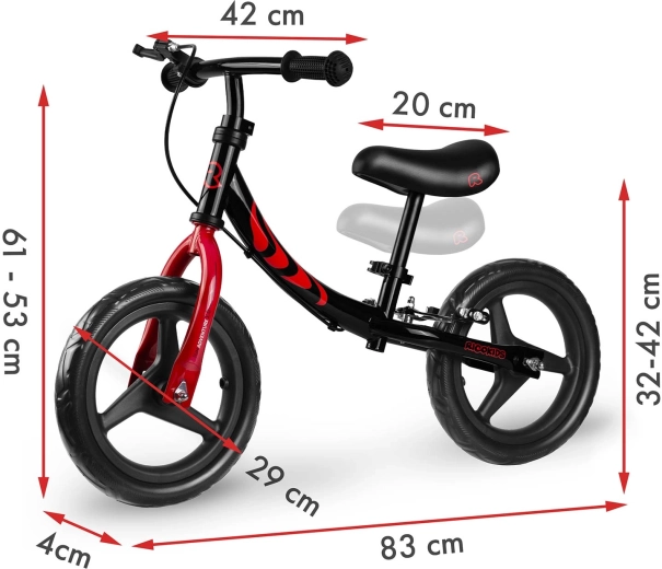 Lehké a obratné odrážedlo Ricokids Fun Adventure je ideální pro první jízdní zážitky. Odolný ocelový rám, neprorazitelná EVA kola 29 cm, ergonomické měkké sedlo s 10cm regulací a zadní brzdou podporují rozvoj rovnováhy a koordinace a zajišťují bezpečnou a pohodlnou jízdu doma i venku.