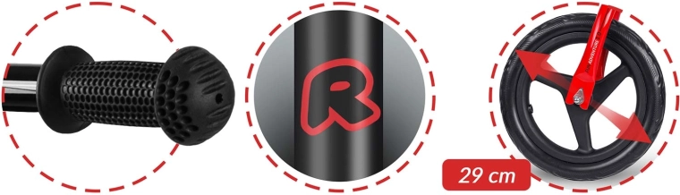 - Neprorazitelná EVA kola 29 cm – odolná vůči vlhkosti, UV i nízkým teplotám, snadno se čistí.